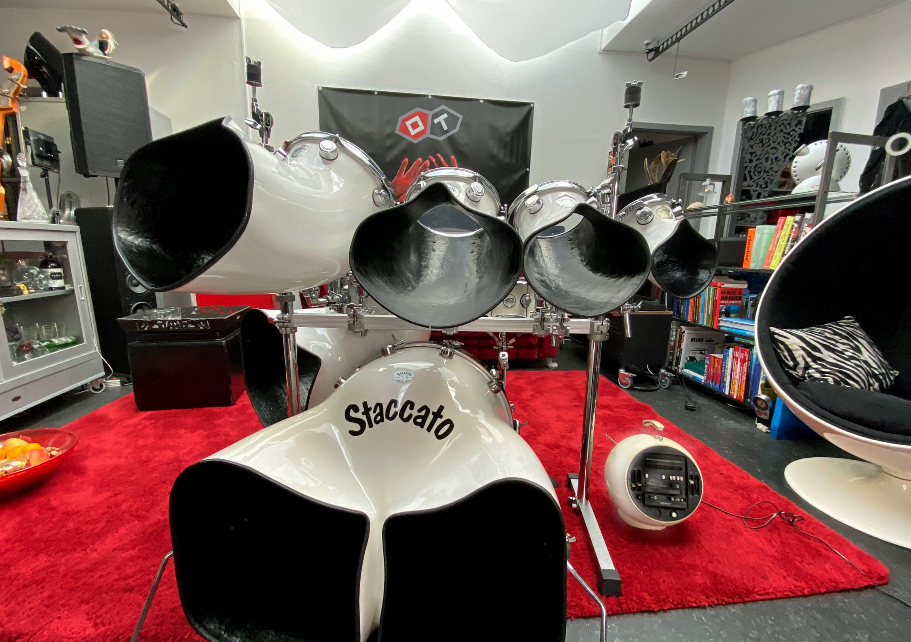 Wo auch immer ich spiele: Das Staccato-Kit ist immer eine unheimliche Show. Design-Freaks und Sammler interessieren sich sehr für die futuristische Vision der 70er-Jahre. Der Zeitgeist der Weltron-Kugelradios und Eero-Aarnio-Ballchairs in Schlagzeugform modelliert. Klar: Es sind ein Oldtimer! Ich hatte bisher drei Kits. Zwei habe ich verkauft. Mein Best-of ist immer noch für besondere Gigs im Einsatz - doch dazu später.